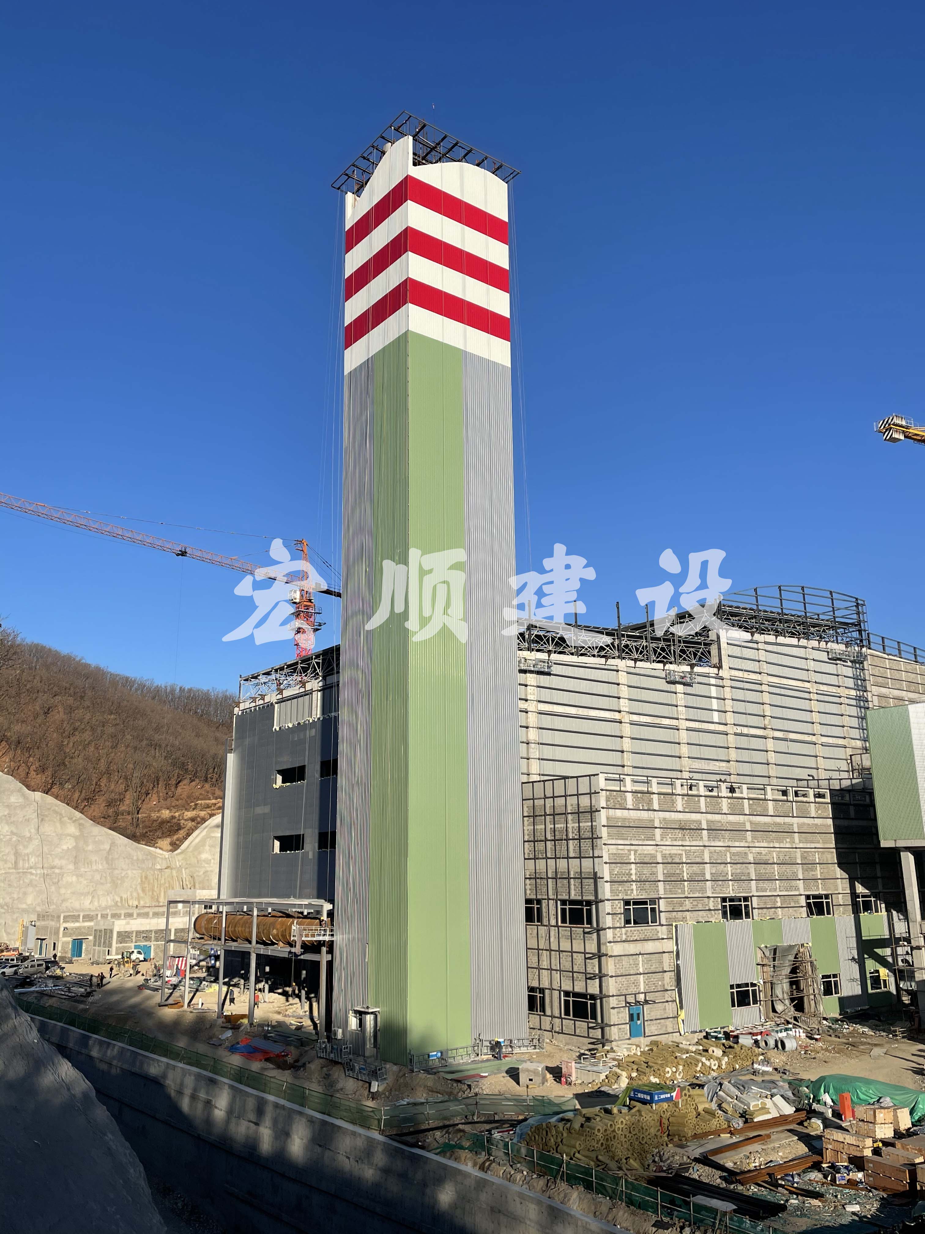 熱烈祝賀遼寧丹東方煙囪外彩鋼瓦美化安裝順利完工